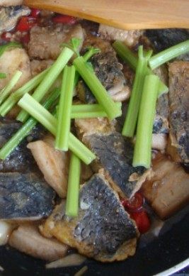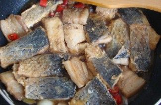 4. 加水、盐,放入鱼块,中火炖只收浓汁