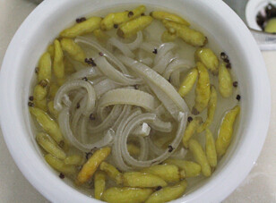 6. 切好的猪皮,泡在调好的泡椒水里,冷藏12小时以上入味即可