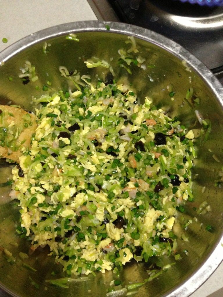 3. 西葫芦刨丝,放一小勺盐刹出水后攥干切碎。