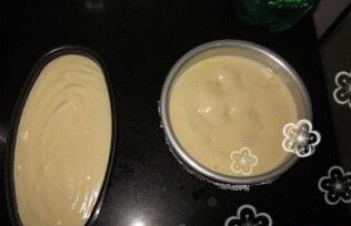 6. 分3次将蛋白加入到蛋黄液里,由上而小的搅匀,装入模具内