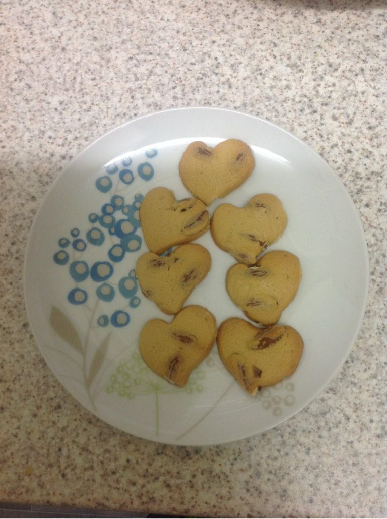 12. 取出后用心行饼干模压出形状,放入预热的烤箱165度,上下火20分钟