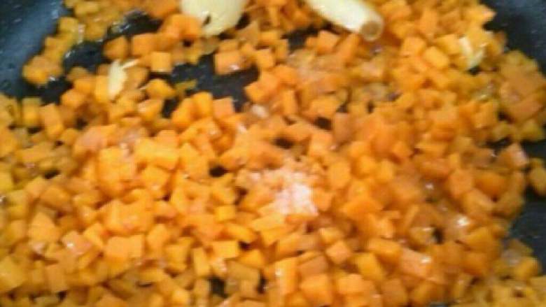 7. 锅烧开放蒜头再加上萝卜翻炒几下即可、盛出。