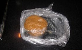 5. 放入冰箱冷藏1个小时后擀面杖擀开成厚的片