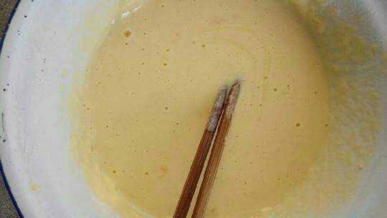 3. 加入小碗水,搅拌成没有疙瘩的面糊,加适量盐调味