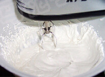 3. 淡奶油加入少许的柠檬汁和20克糖打发至七成发。放入冰箱备用