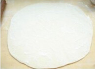 5. 将面团放在面板上,在面团上撒上少许面粉,将面团擀成片片