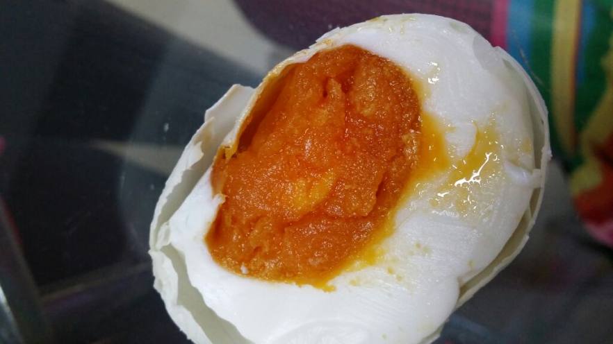6. 十七天后试吃三个,有个小点的己经出油,蛋白很咸,另两个未出油,蛋白有点咸,可以直接吃。