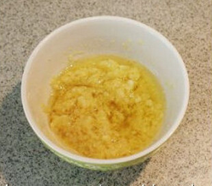 6. 锅里放一些鸡汤,放入蒜茸炒香,再倒入清洁后的大米,翻炒均匀