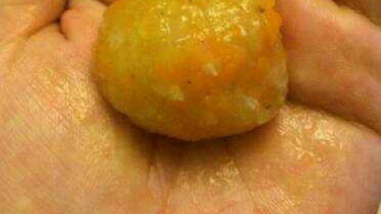 5. 用勺子将肉馅舀入手中,反复搓成型。