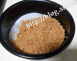 1. 饼干压碎,放入切成小块的黄油,微波加热融化,