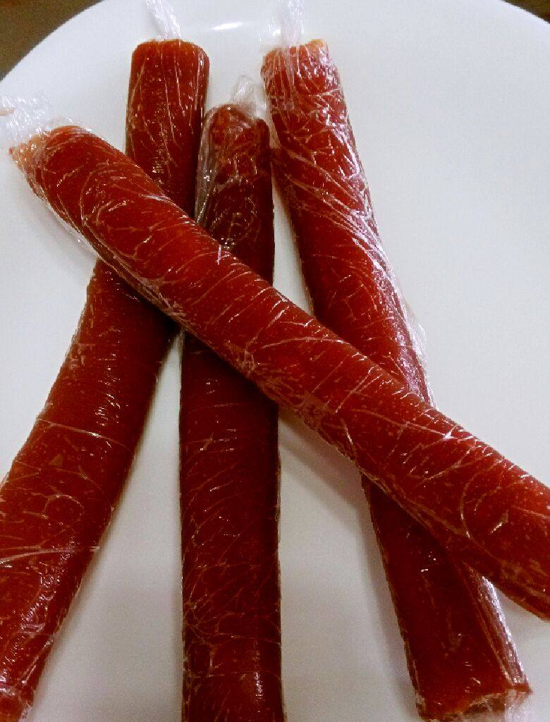 6. 撕开保鲜膜光鲜亮丽的山楂卷即可食用,放入冰箱保鲜口感更佳