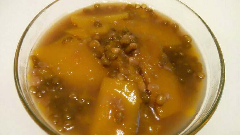 做法:1.干绿豆用清水淘洗干净后用清水泡一两小时(可节省熬制的时间)后沥水,放锅里加半锅水,加入适量冰糖,烧开后小火慢煮半小时,直至绿豆开花。老南瓜切厚片或小块。将南瓜块