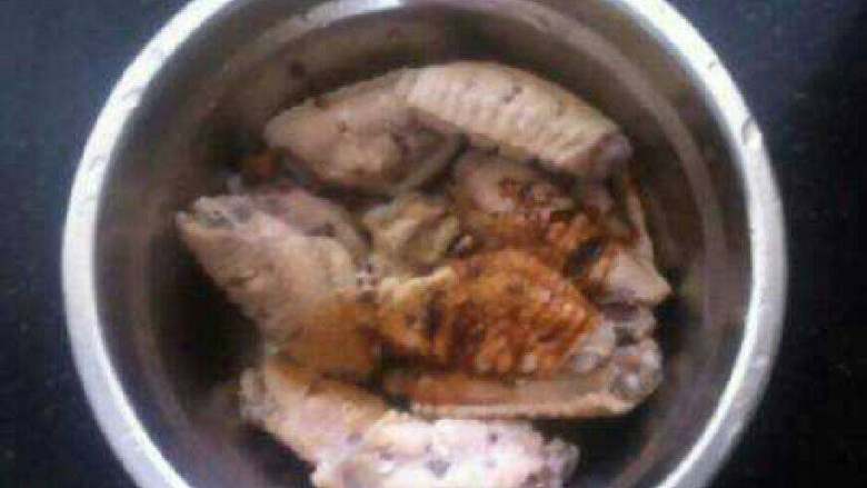 3. 然后用冷水洗干净,加调味料,(盐,鸡精,料酒,白胡椒粉,五香粉,干辣椒,姜片,)