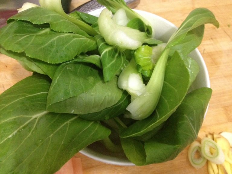 6. 如图,我喜好煮久一点的油菜,所以盖上锅盖等了2分钟。出锅前加入鸡精