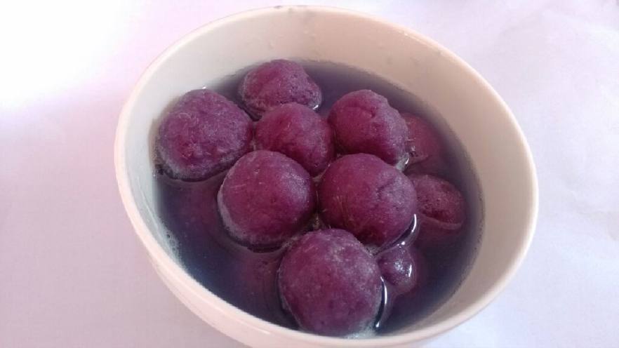 - 紫薯鸡蛋大小即可。要不糯米粉会粘不起来。