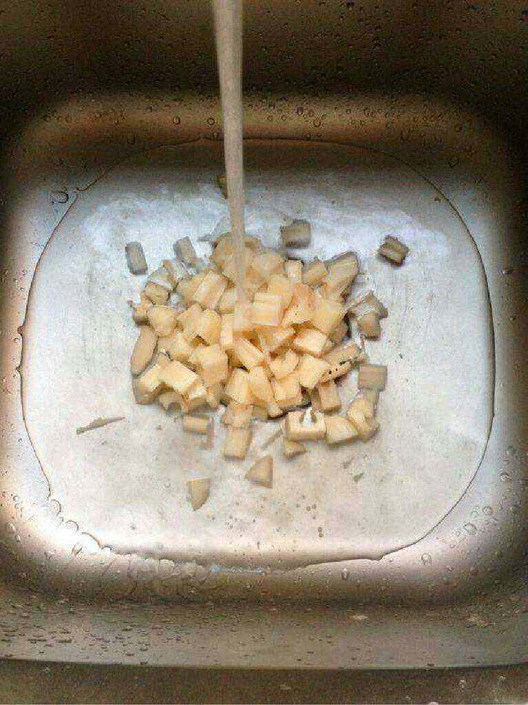 2. 藕切丁放进青水里泡一下。