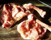 2. 用叉子把鸡皮上扎眼,以免煎至时鸡皮卷曲