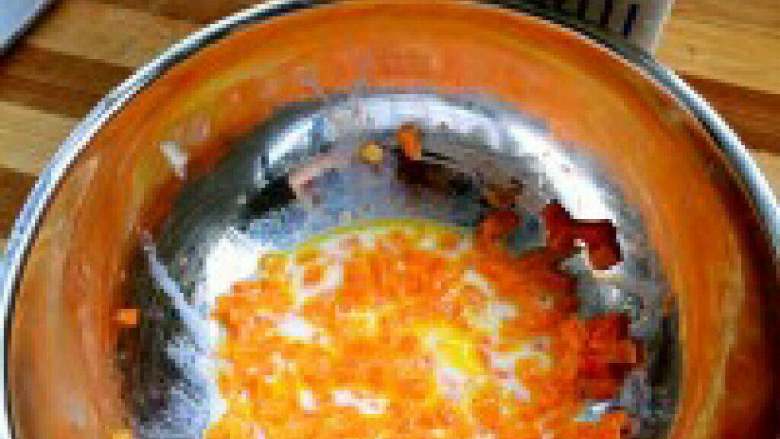 2. 在把胡萝卜盛出来放碗里,加入适量牛奶,【不用把牛奶都到了,用不完】。