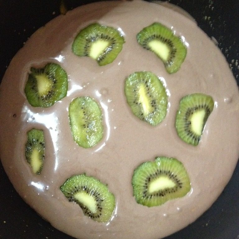 12. 最后封顶 一层混合酱 再铺一层奇异果 放置冰箱 冰冻一个小时