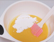 8. 静置好的面糊放入泡打粉,搅拌均匀