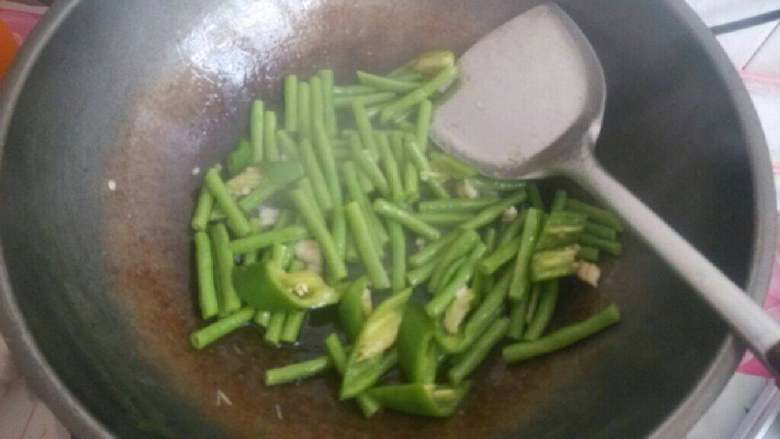 6. 放入豆角炒一下