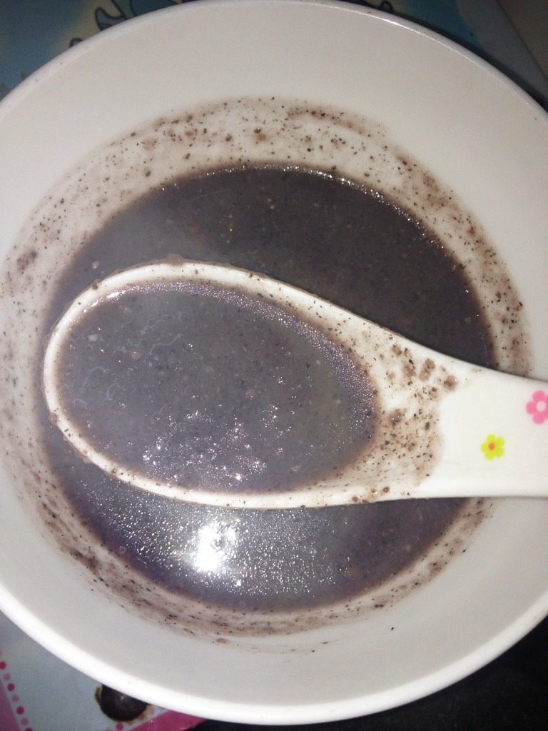 6. 黑芝麻糊煮好后倒入白糖再煮3到5分钟 这样能增加粘滑感