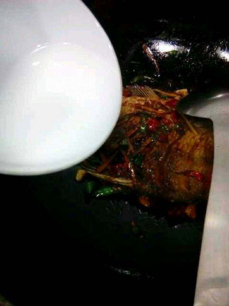 12. 放入红辣椒在把炸好的鱼放进去翻炒。