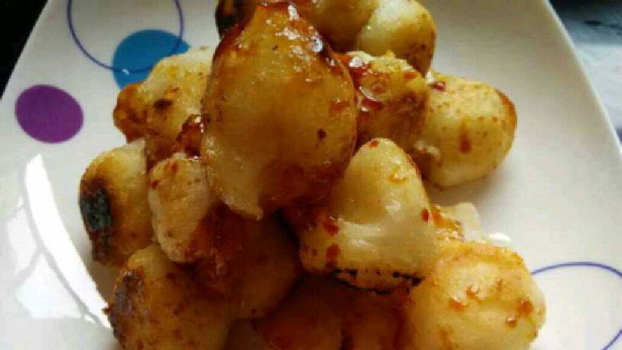 7. 炸好后成金黄放一边在倒进适量糖。