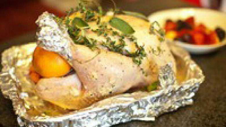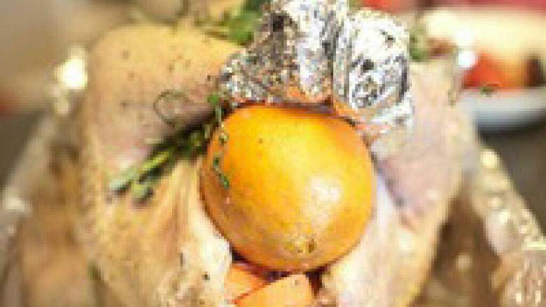 11. 在火鸡屁股处堵住一个橙子。
