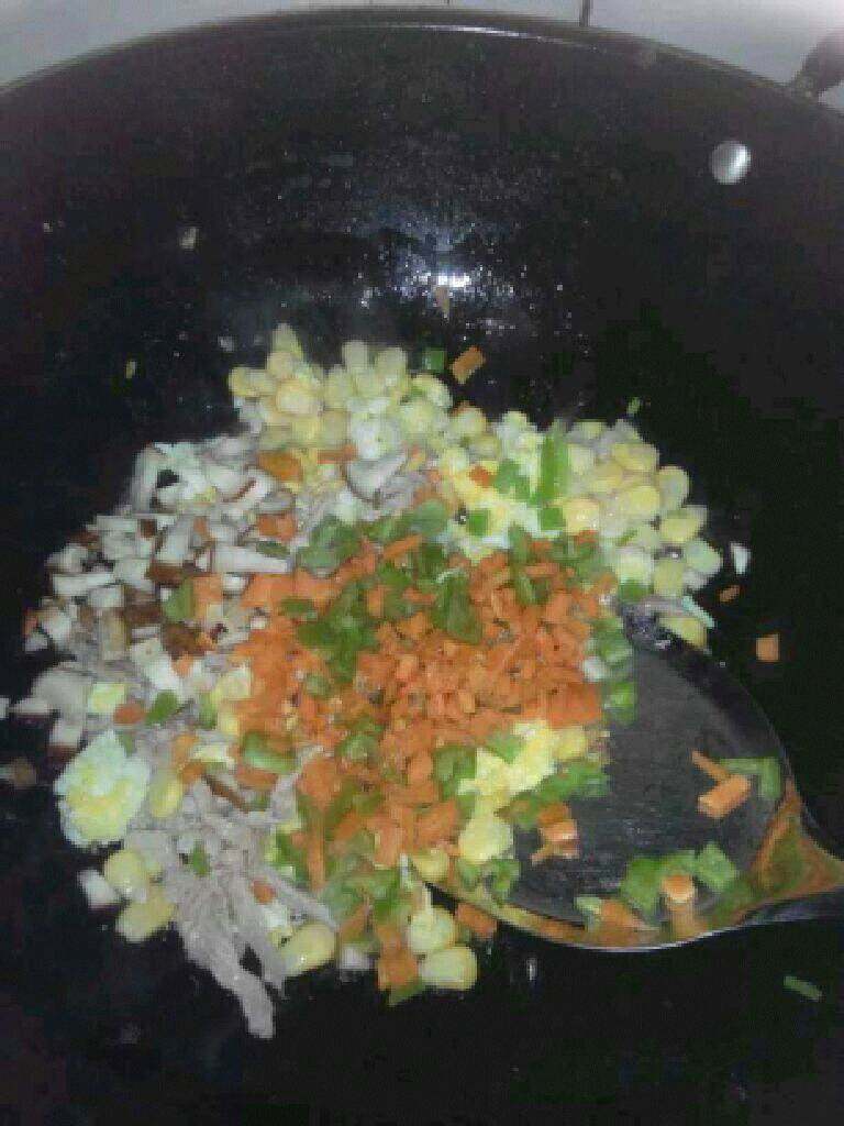 2. 香菇洗干净切成小丁用热水泡一下备用。
