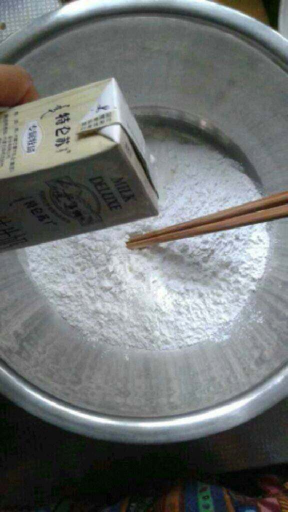 3. 把牛奶面粉搅拌均匀,揉成面团。