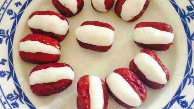 4. 在把面团弄一点点塞进红枣里,弄好之后放进蒸锅里大火蒸20分钟就可以了。