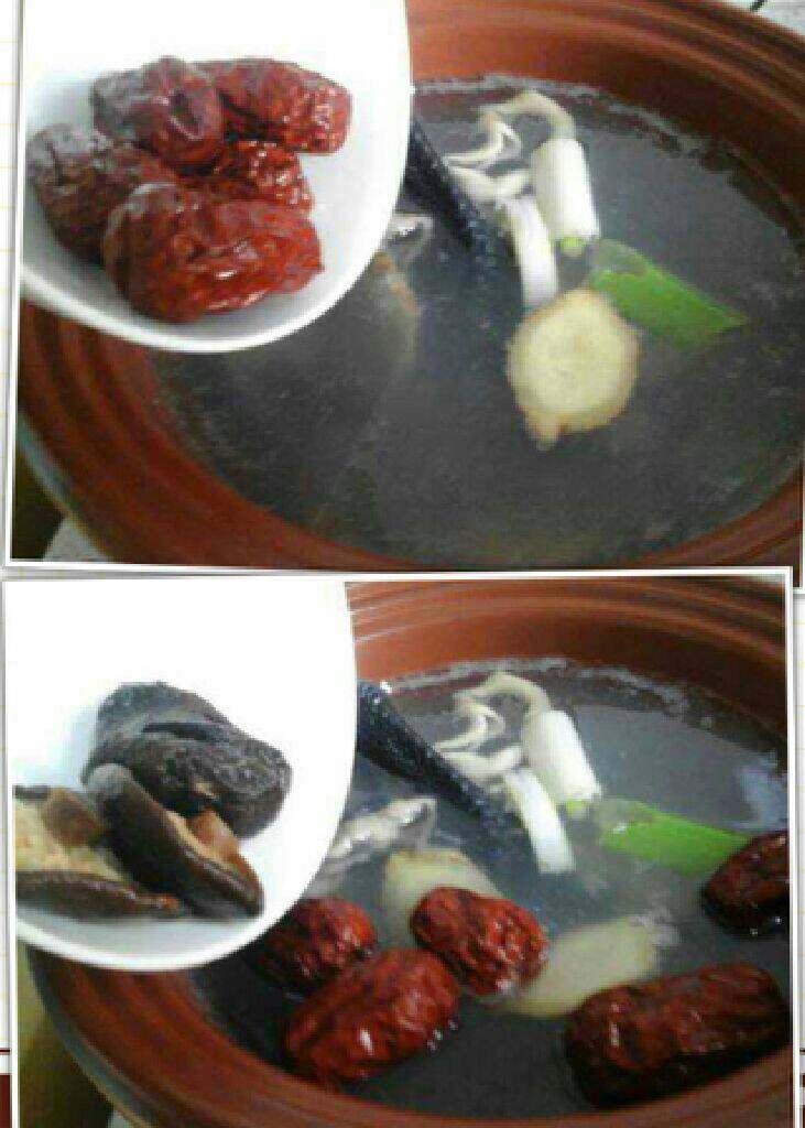 5. 煲一个小时后打开盖,放入香菇,红枣,继续煲