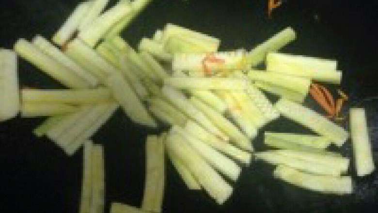 4. 把除了菠菜和豆芽以外的 蔬菜 每一种放一点盐和一点香油拌 匀以后分别下锅炒熟 肉丝之前已经 调味好了直接炒熟即可 这道菜最需要耐心的地方 不能偷懒要分开炒。