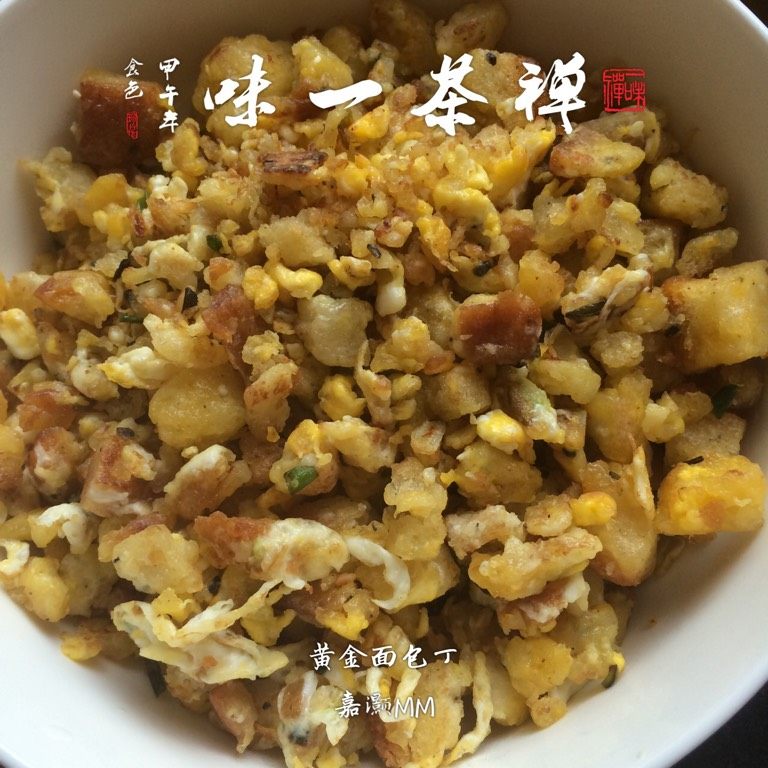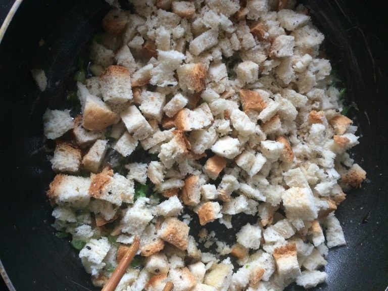 4. 如图不用炒香葱碎直接下面包丁翻炒