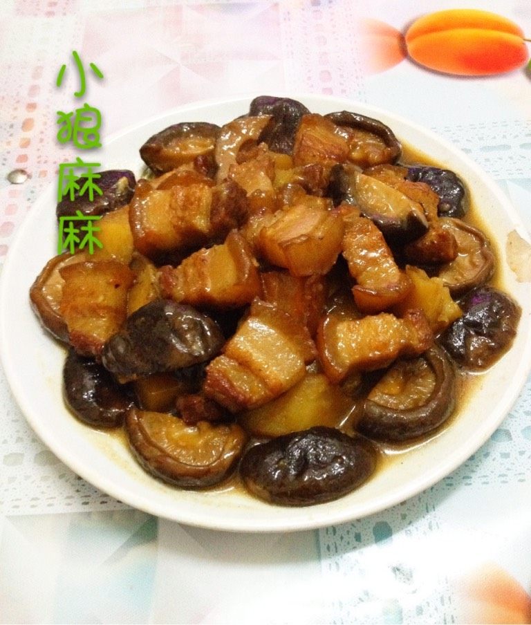 4. 倒入处理好的香菇 下适量酱油 蚝油 盐翻炒均匀 加一小碗清水 开锅后转高压锅8分钟即可 时间来不及就用高压锅压了