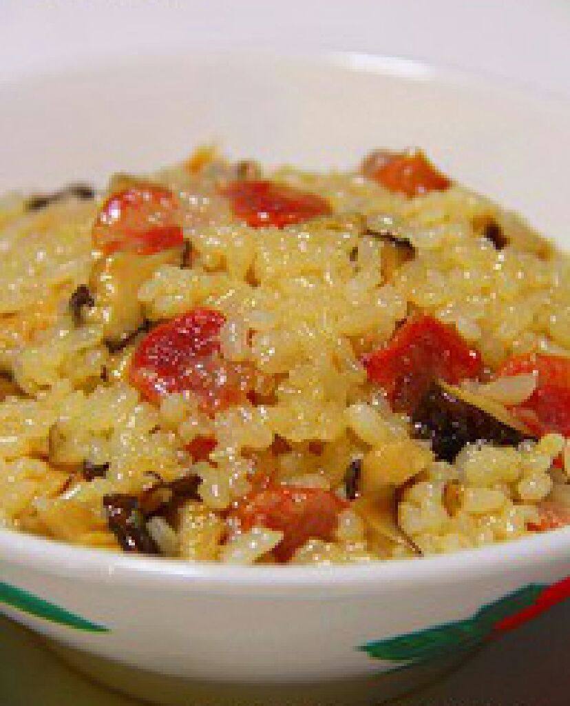 3. 将香米洗净,用泡发香菇的水加入电饭锅内,用香菇水来煮饭,饭会更香哦!