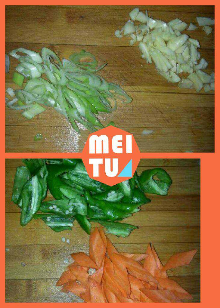 13. 留底油先爆香姜蒜,再倒入胡萝卜青椒翻炒