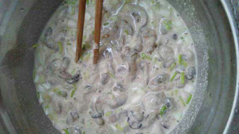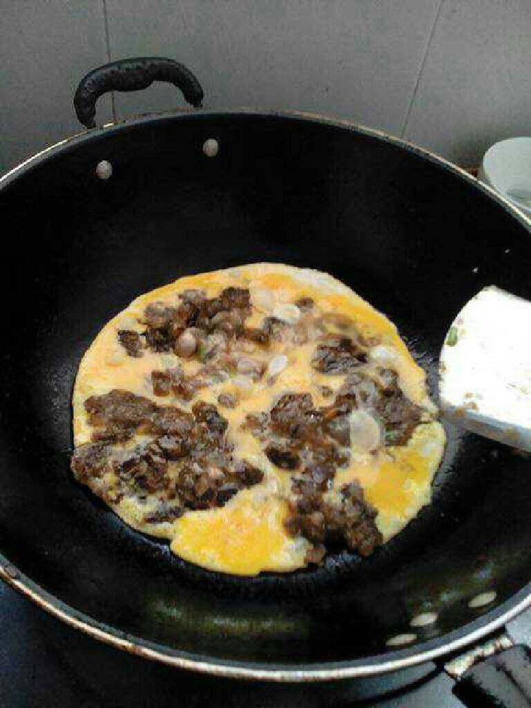 7. 再倒入鸡蛋液凝固,鸡蛋放点盐的。