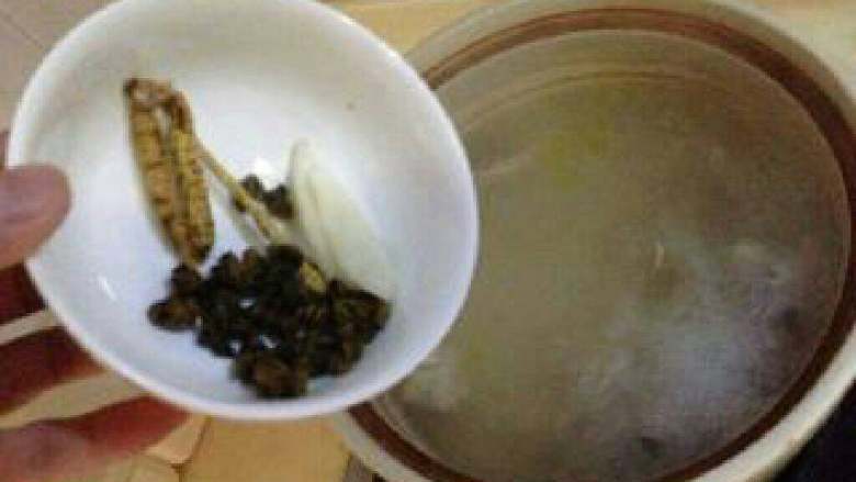 3. 同时加入姜片、人参和石斛,大火煮开后转中小火,煲1小时。