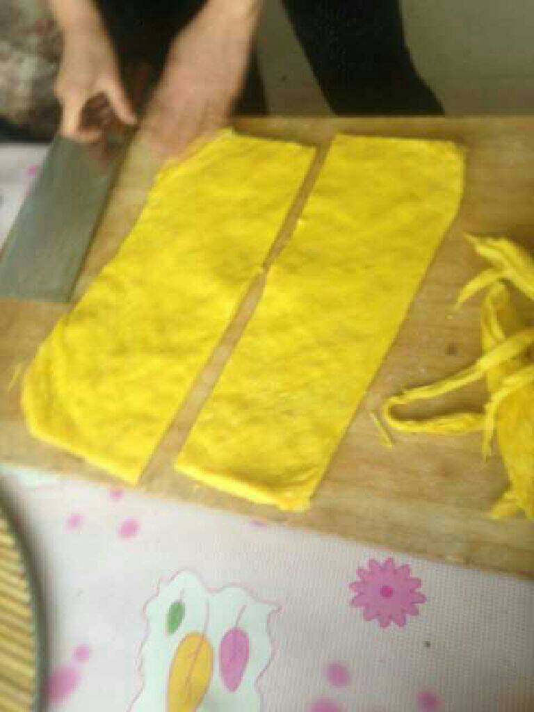 11. 一堆饹馇圈做好了,将饹馇卷切成锅里能放下的长度开炸~由于一心炸饹馇所以没顾上拍照。