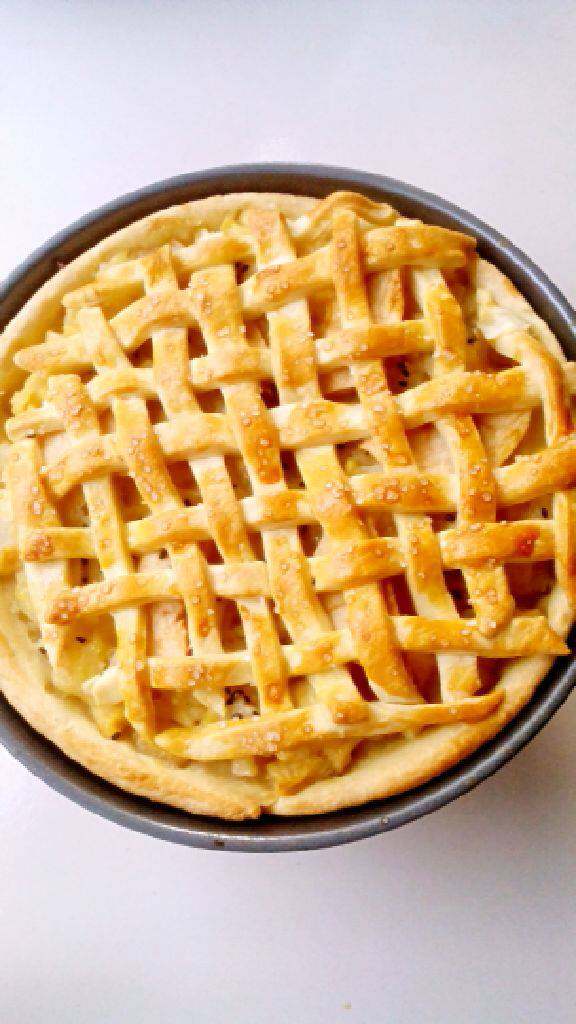 4. 用叉子插上均匀的小洞洞,放进盘里压实,