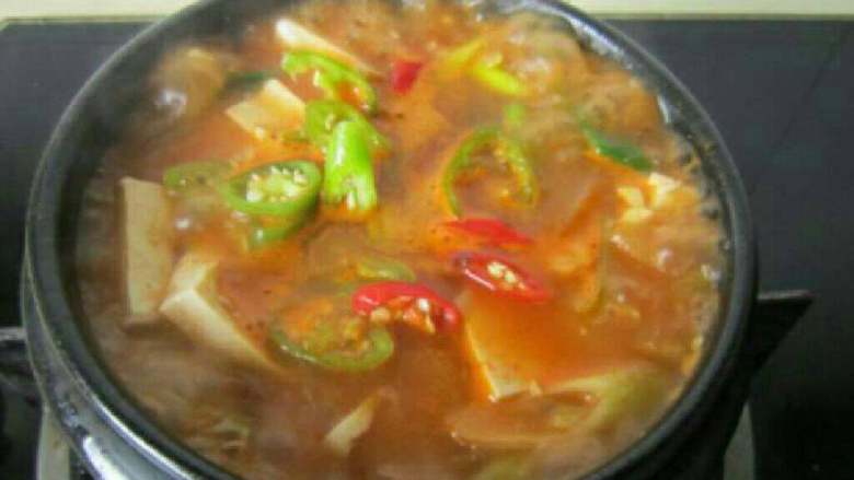 4. 放入西葫芦 豆腐 适量韩国大酱。