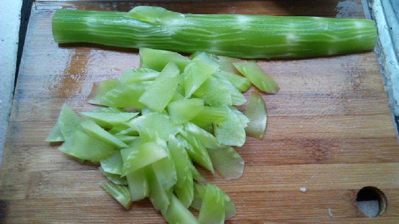 2. 先切开再切菱形片【建议可以切成丝这样炒的比较容易熟】