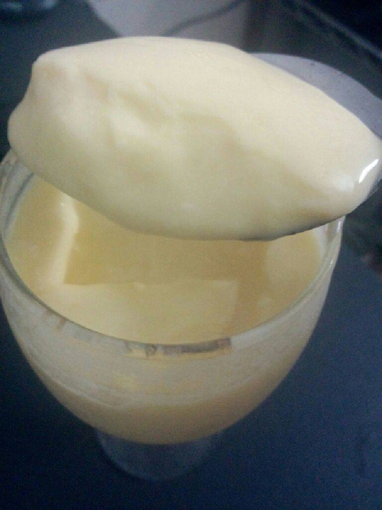 2. 蛋黄搅拌均匀加入牛奶拌匀