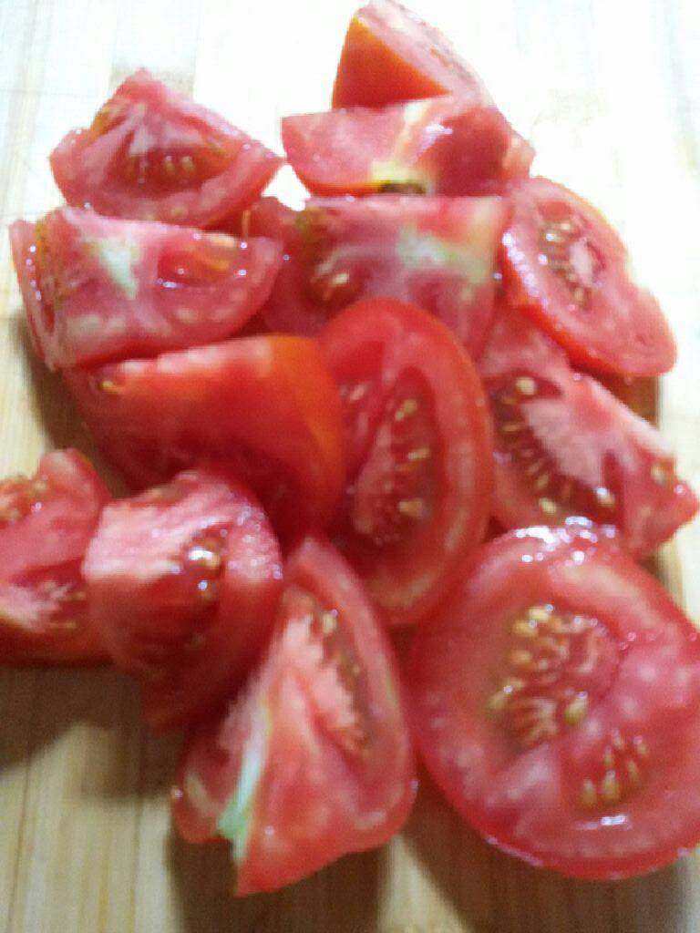 7. 锅留底油倒入切好洋葱翻炒后捞出,再番茄块炒至出水后,倒焯好的牛肉翻炒。