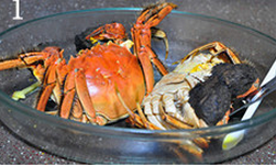 2. 拆出蟹粉,分开蟹黄和蟹肉
