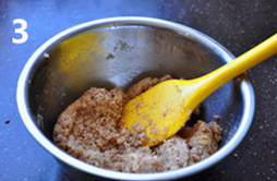 3. 将黄油和果仁糖碎(1和2)混合,拌匀