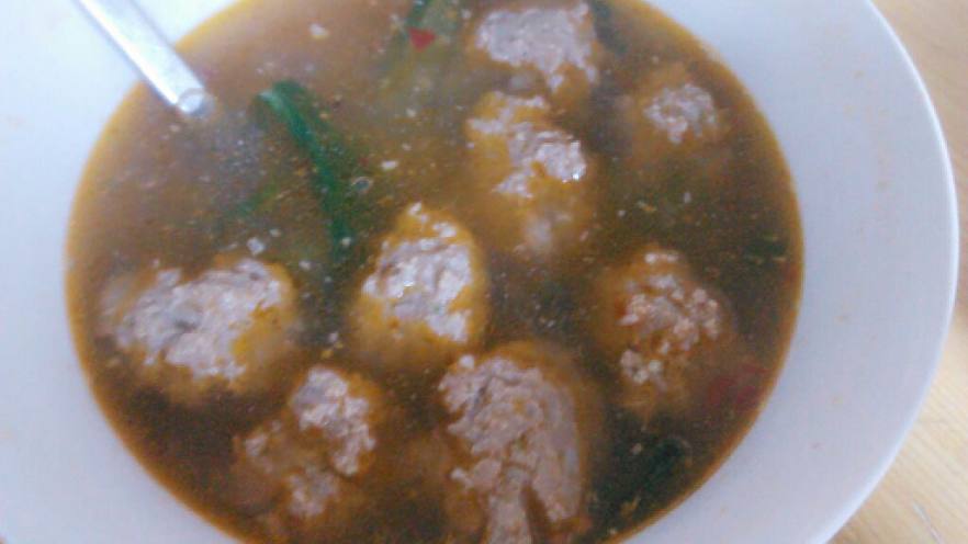 6. 锅里水烧开后开始用勺子挖肉制作丸子,加入小白菜,火锅底料再煮五分钟即可。