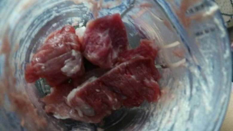 1. 猪肉切块用料理机搅碎